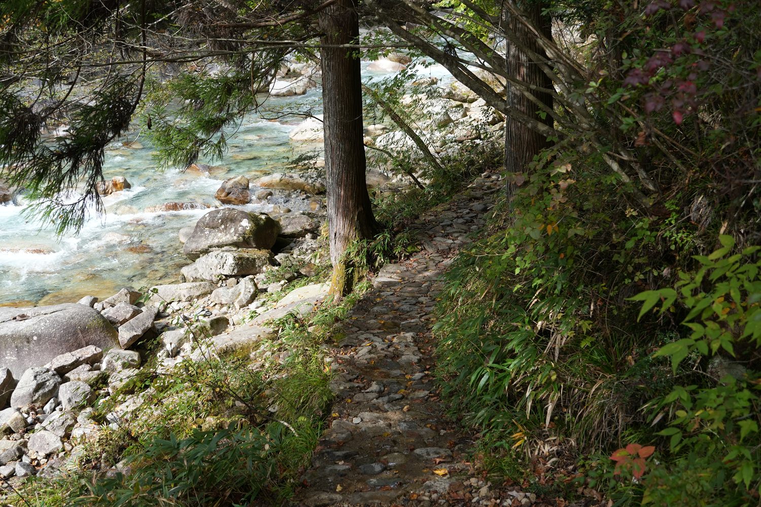 Located deep within the Atera gorge, this route travels far from the relative crowds of the Nakasendo’s post towns and plunges into the heart of Nagano’s mountains for some genuinely stunning natural scenery. Despite that, there’s little climbing or challenge on this here—instead, the Atera gorge allows one to immerse oneself in the sights and sounds of nature for a peaceful, relaxing walk.